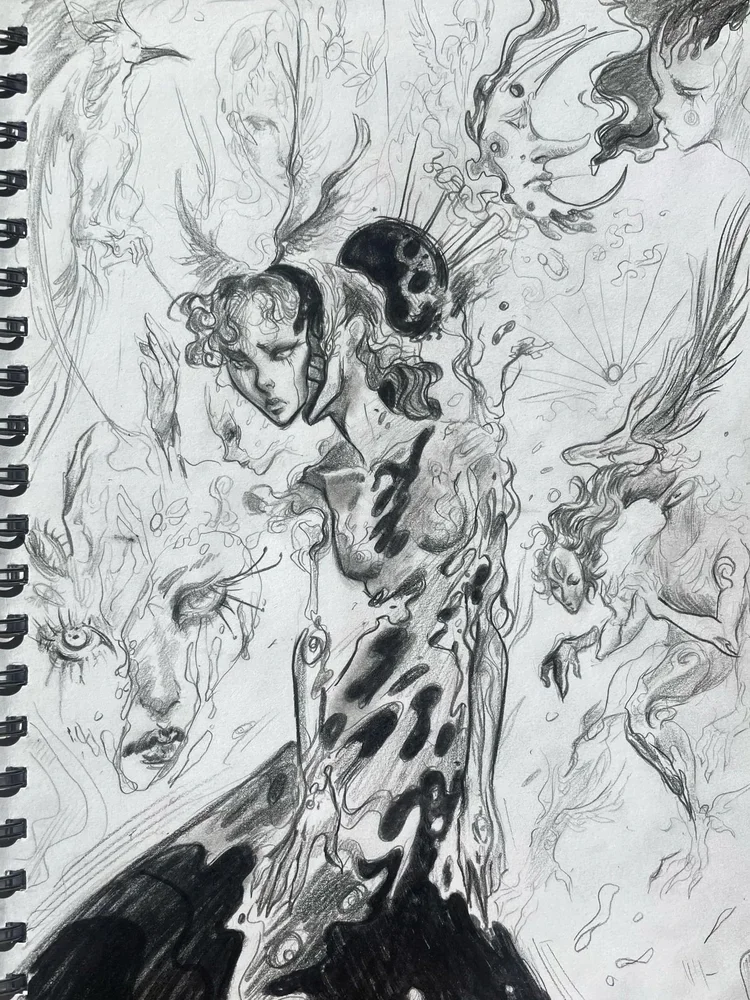 Fractured - Ink and Pencil, page from my Sketchbook 149€ + shipping