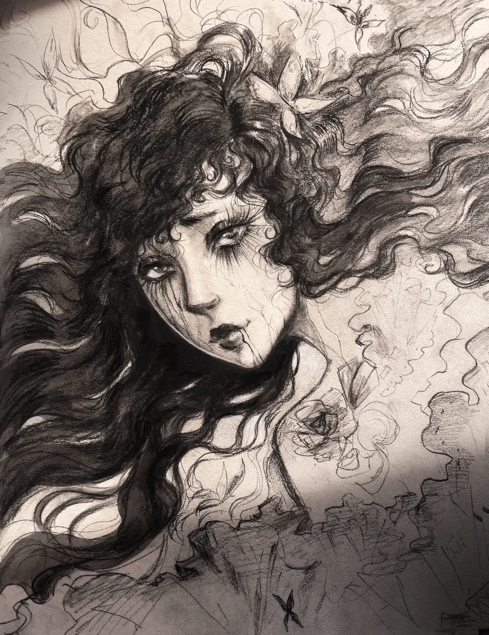 Tired soft smile - Available for 99€ + shipping 35cm x 28cm Charcoal on paper.