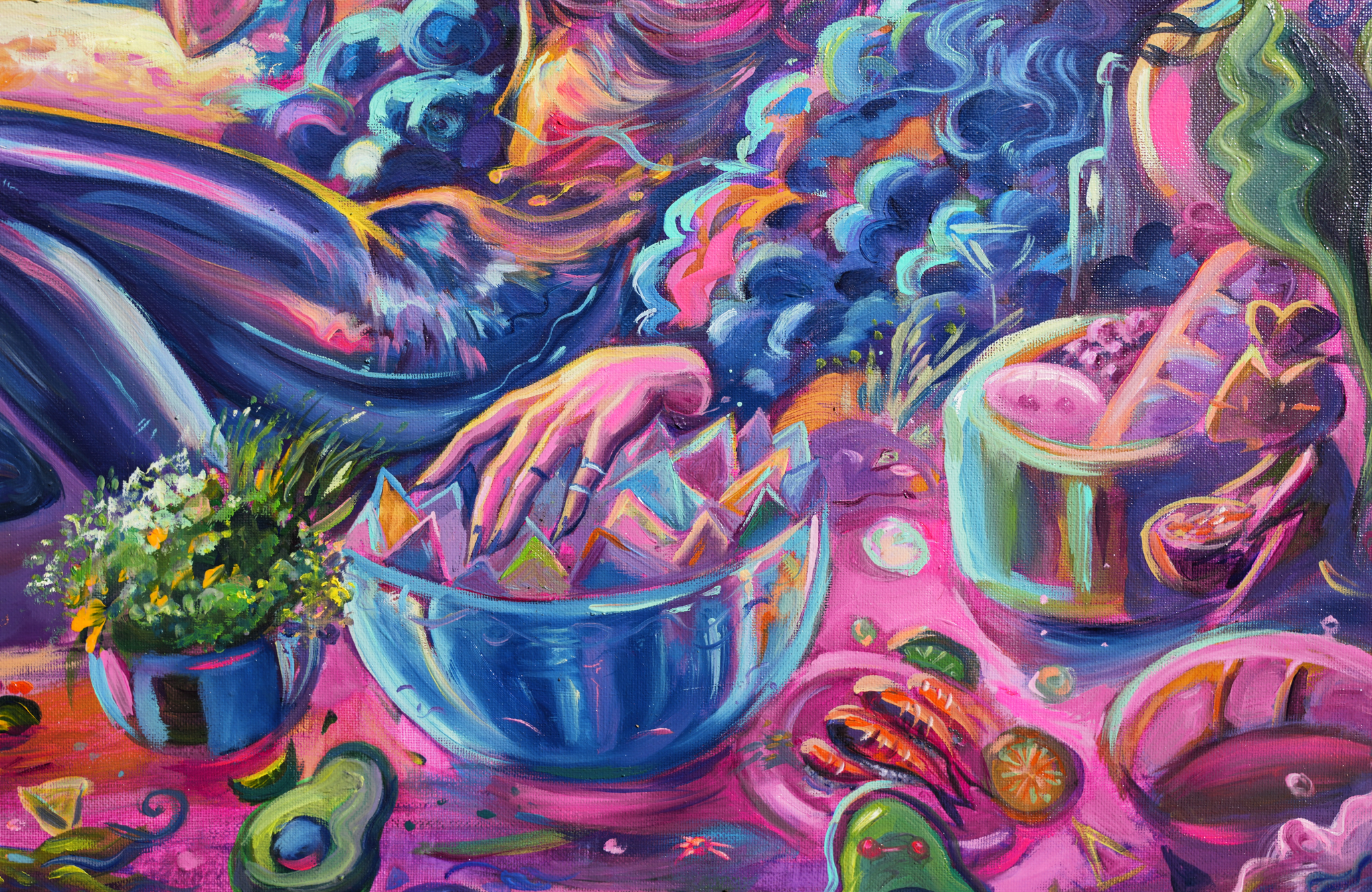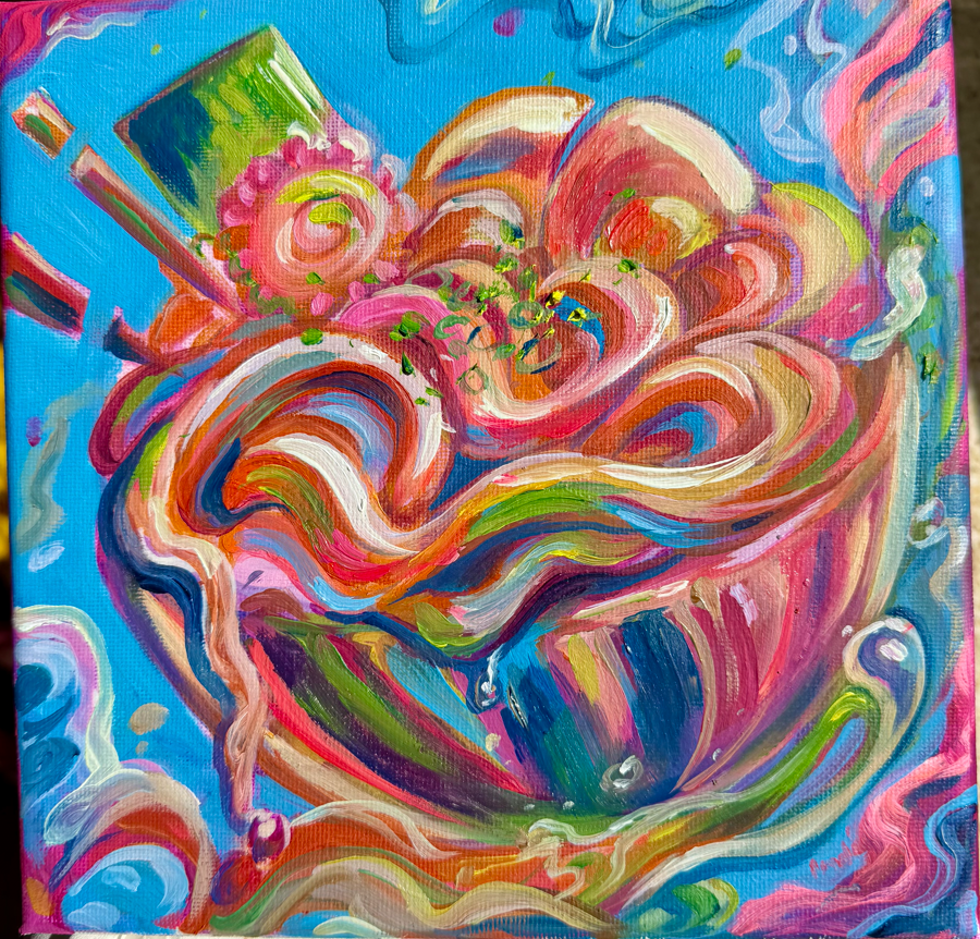I really enjoy a good bowl of ramen. Do you know the feeling of being exhausted after a long day and looking forward to your comfort meal? Well tht is what this painting is about.