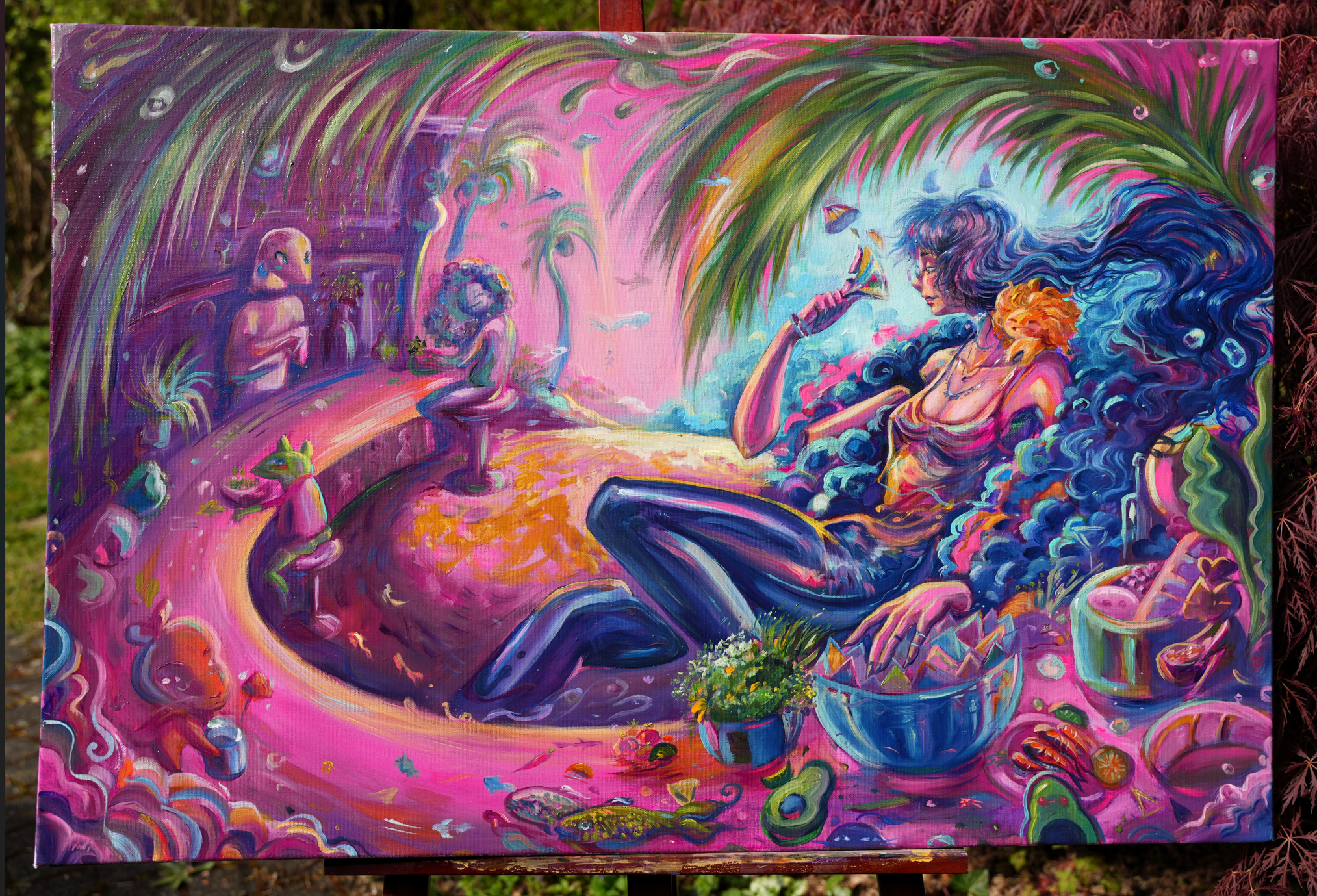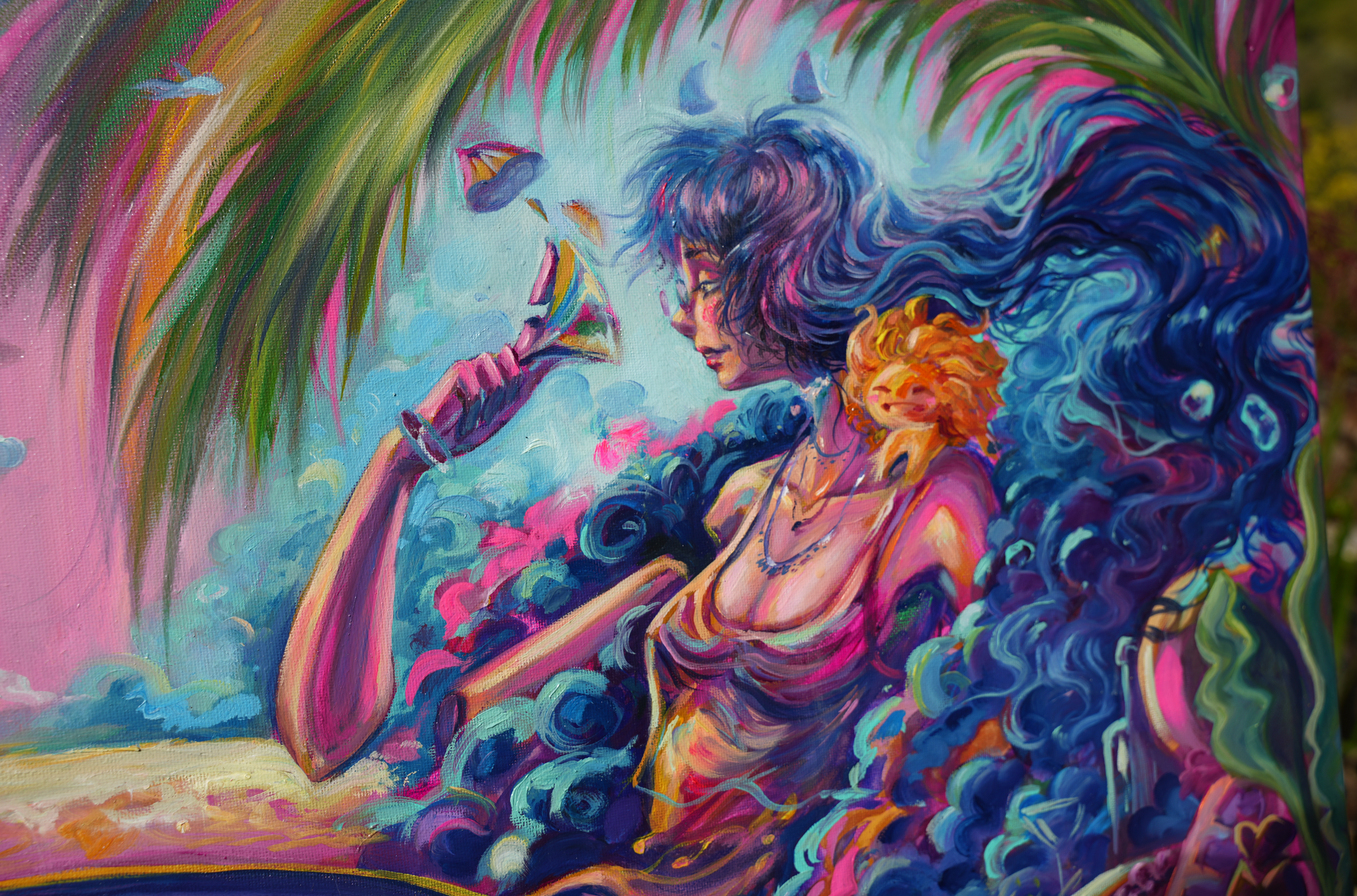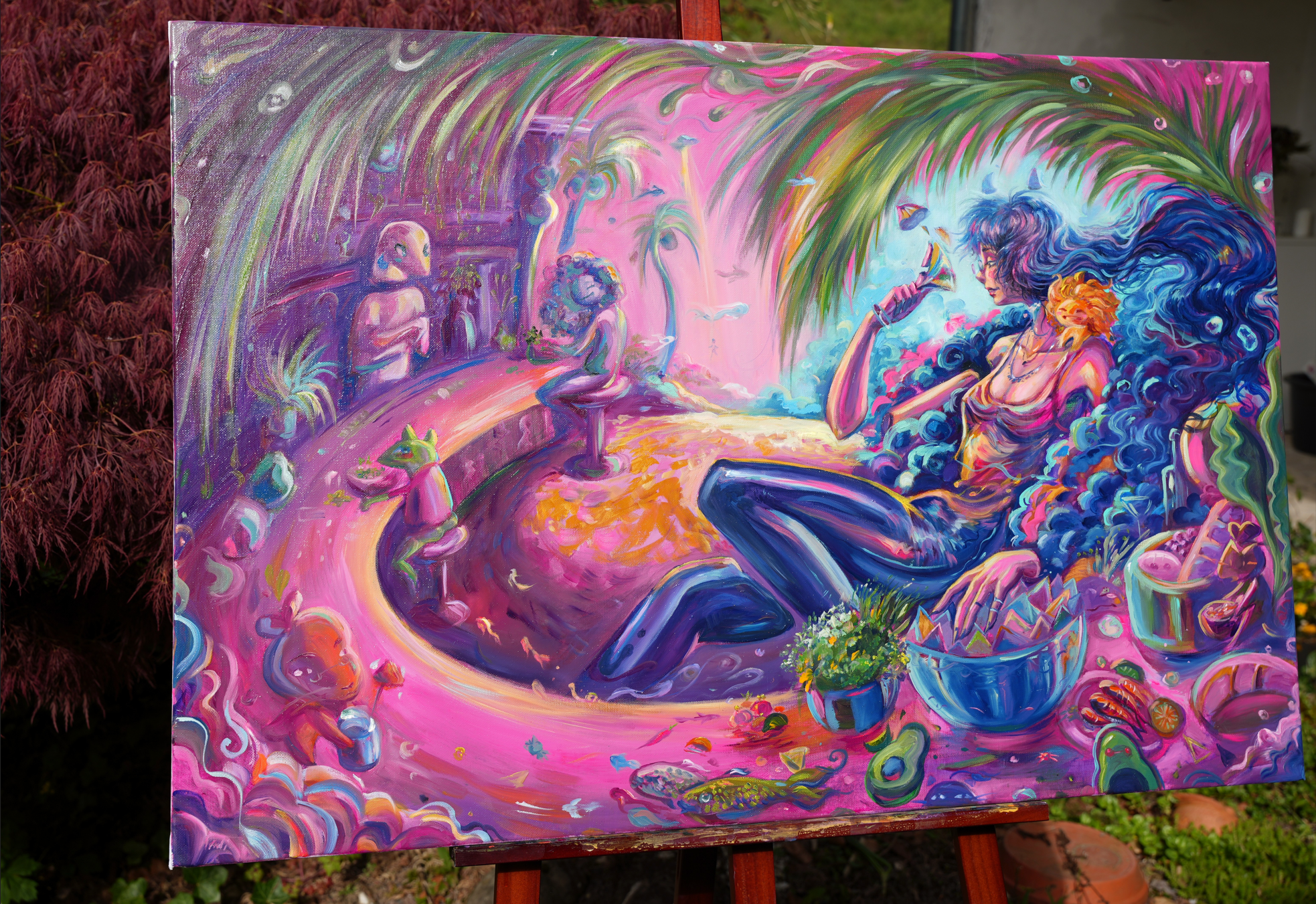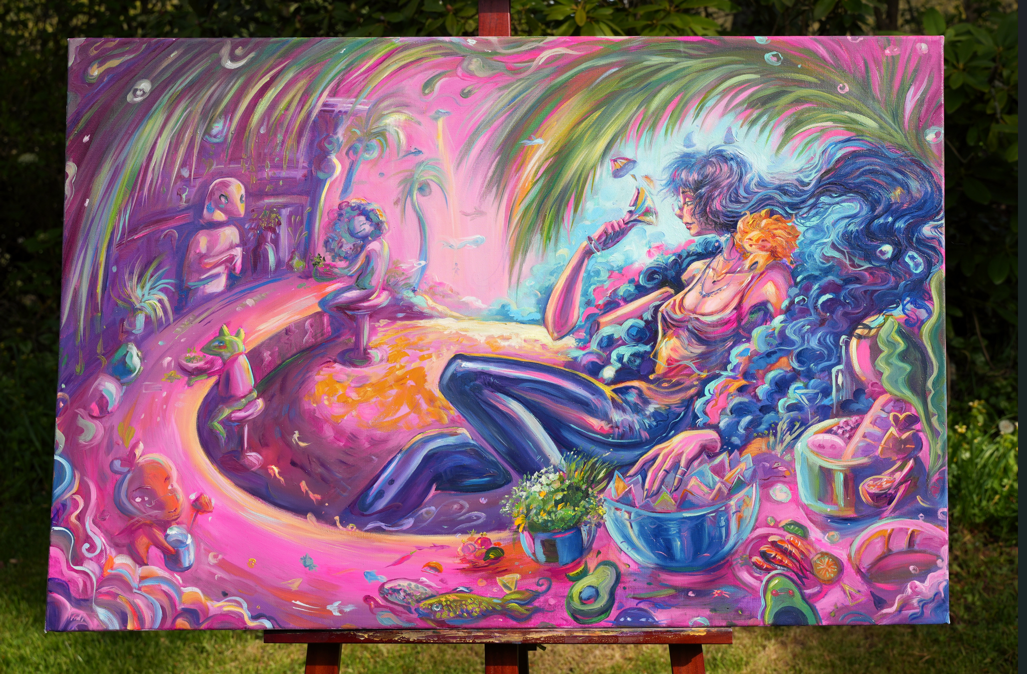 I want her to be a reminder to enjoy life, that taking time for yourself is important and she resembles a figure that went trough a lot and is finally able to enjoy life again.