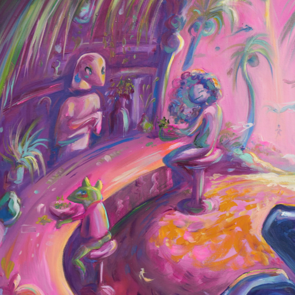 This is an addition to my mental health focused work since I believe it is important to remind ourself to slow down, to take time for what gives us peace, a moment of relaxation or something that becomes a pleasant new memory. That is what I want these paintings to be, a place of comfort. While I like to keep creating my own little worlds the ideas and feelings are directly from real life and things I enjoy to do.